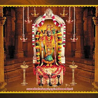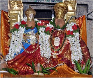 During the Rule of the King Saraboji, Lordess Abirami, for the sake of her votary Abirami Butter, has thrown her stud (Thaadangam) towards the sky during the new moon day. The stud later become round shaped and the new moon day turned into a full-moon Day (Pournami). The votary Abirami Butter has sung the famous"AbiramiAndhadhi" praising LordessAbirami to save him from death, sentenced by the King. LordessAbirami excused the king and gave her blessings to the votary. This historical story further blossoms Thirukadaiyur. In the Tamil Calendar, during the month of Kaarthigai (Viruchiga Month), on each and every Monday during Somavarams, the Priests performs "Sankaa-Abishegam" with 1008 Sankus to the Deities for get the blessings for the welfare of the people.